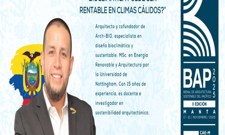 Arch-BIO anuncia su participación en la II Edición de la Bienal de Arquitectura Sostenible del Pacífico – BAP 2025, donde el arquitecto Santiago Morales intervendrá como ponente el martes a las 12h30, abordando el tema: “¿Cómo la arquitectura bioclimática puede ser rentable en climas cálidos?”
